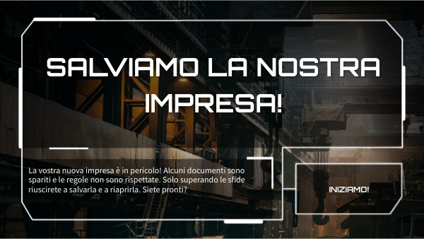 La vostra nuova impresa è in pericolo! Alcuni documenti sono spariti e le regole non sono rispettate. Solo superando le sfide riuscirete a salvarla e a riaprirla. Siete pronti?