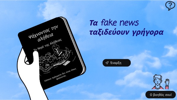 Γεια! Είμαι ο Touribot, ο βοηθός σου μέσα στο παιχνίδι! Σε κάθε σελίδα θα με βρίσκεις κάτω δεξιά. Αν έχεις απορίες ή θες να σκεφτείς λίγο καλύτερα, γράψε μου και θα σου δώσω ιδέες! Δε σου λέω τη σωστή απάντηση, αλλά σε βοηθάω να τη βρεις μόνος ή μόνη σου. Σκέψου με σαν έναν ντετέκτιβ ταξιδιώτη που θέλει να ξεχωρίσει τι είναι αληθινό και τι όχι στο διαδίκτυο. Μπορείς να με ρωτάς ό,τι θες!