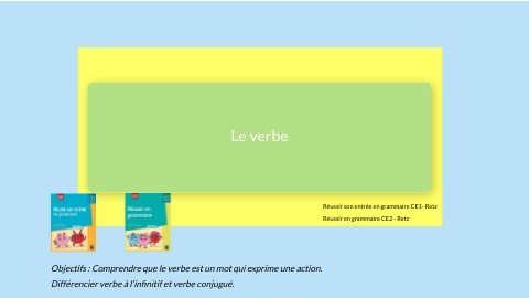 Objectifs : Comprendre que le verbe est un mot qui exprime une action. Différencier verbe à l'infinitif et verbe conjugué.