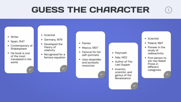 Try to identify the character before flipping the card. If you get it right, click on the sign ✔, and if you are wrong, select ✖.