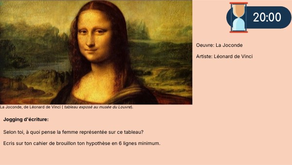 Selon toi, à quoi pense la femme représentée sur ce tableau? Ecris sur ton cahier de brouillon ton hypothèse en 6 lignes minimum.
