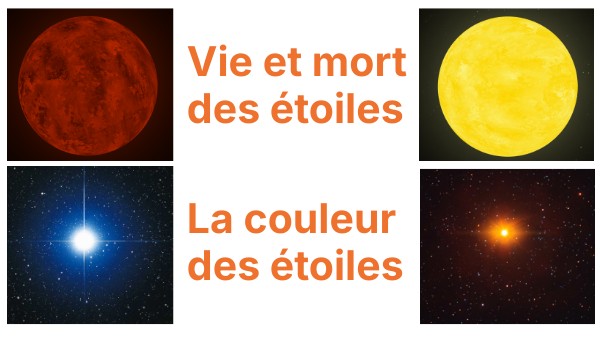 La couleur d'une étoile dépend essentiellement de sa température. Plus une étoile est chaude, plus sa couleur vire au bleu. Plus une étoile est froide, plus sa couleur vire au rouge. La taille de l'étoile n'a pas de lien avec sa couleur, en revanche cela joue sur sa luminosité, c'est à dire la quantité de lumière perçue. On peut trouver toutes les couleurs possibles dans les étoiles, à une exeption près :