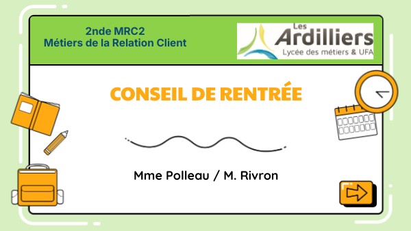 Les mouvements de début d'année : Départs : 2 MRC 2 B : BROUWERS--HERVIEU Carene passe en 1 MCV A B (Décision actée) 2 MRC 2 B : GAUCHER Jessy en partance pour une seconde générale (Duplessis Mornay). (Décision non-actée) Arrivée : 2 MRC 2 B : AUPETIT Agathe est arrivée en provenance de 2MRC1 (covoiturage) (Décision actée)