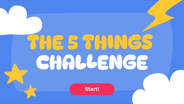 1. Take a piece of a paper an go into a small group of 3-4 2. Name 5 things of the category in 1 minute 3. You get points for each words. Same words gets you 0,5 points, so be inventive!
