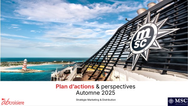 1. VISIBILITÉ & NOTORIÉTÉ Pack Ouverture : MSC prioritaire dans chaque nouvelle agence (PLV, vitrine dédiée, animation locale). Mini-croisière MSC offerte comme buzz marketing lors des inaugurations ?? Vitrines dynamiques (affiches, écrans) → MSC visible en front. 2. Septembre : 17/09 au 30/09 Animation 360 dans tout le réseau Fram et Promovacances Newsletter dédiée sur base clients avec push Musica, World Euopa, Caraibes Challenges vendeurs dédiés MSC → prime + incentives voyage. Stand Croisiere Salon du CE FRAM 3. Octobre : Centre commercial ITALIE : Ouverture 100% MSC du 06/10 au 16/10 Campagnes géolocalisées autour des agences : Google Ads, Meta, display. Newsletters clients FRAM/PMV avec focus MSC. Push social media (Instagram, Facebook) avec relais vitrines. Push Nouvelles agences : Chambourcy/Calais/Dieppe/Bezier/Orange Animation Centre Commercial Istres : Le mois de la croisiere 4. Novembre : Push Premium YC dans 20 agences + corners 5. OBJECTIF & IMPACT Cap > 5 M€ CA MSC 2025 via agences. Accroissement de la part MSC dans le mix croisière agences. Fidélisation des primo-croisiéristes recrutés en agences → effet long terme.
