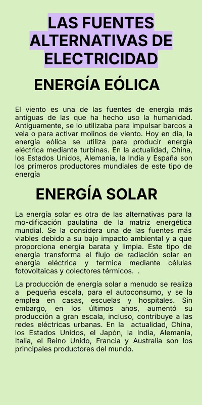LAS FUENTES ALTERNATIVAS DE ELECTRICIDAD