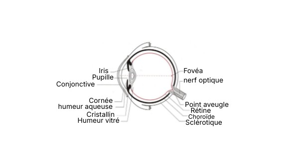 La rétine est la fine membrane au fond de l’œil qui capte la lumière grâce à ses cellules (cônes et bâtonnets) et la transforme en signaux envoyés au cerveau.