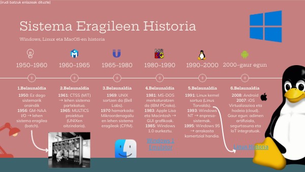 1991: Linux kernel sortua (Linus Torvalds).1993: Windows NT → enpresa-sistemak.1995: Windows 95 → arrakasta komertzial handia.
