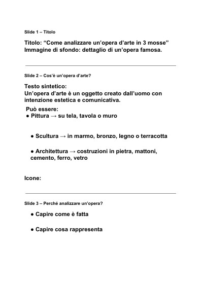 Slide extra – Scheda dettagliata di analisi dell’opera d’arte