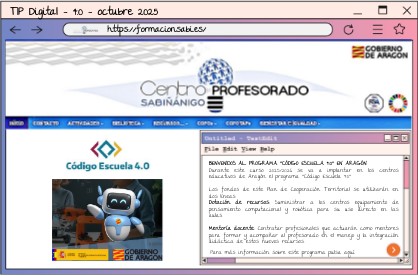 Durante este curso 2025/2026 se va a implantar en los centros educativos de Aragón el programa "Código Escuela 4.0" Los fondos de este Plan de Cooperación Territorial se utilizarán en dos líneas: Dotación de recursos: Suministrar a los centros equipamiento de pensamiento computacional y robótica para su uso directo en las aulas. Mentoría docente: Contratar profesionales que actuarán como mentores para formar y acompañar al profesorado en el manejo y la integración didáctica de estos nuevos recursos.
