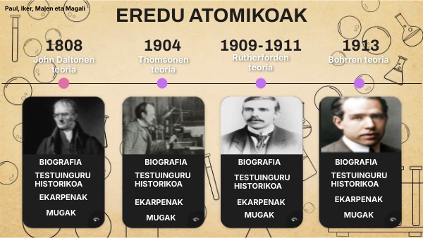 zuen elementuak atomo deituriko partikula oso txikiz osatuta.INGLATERRA, 1766/09/05 - 1844/07/27