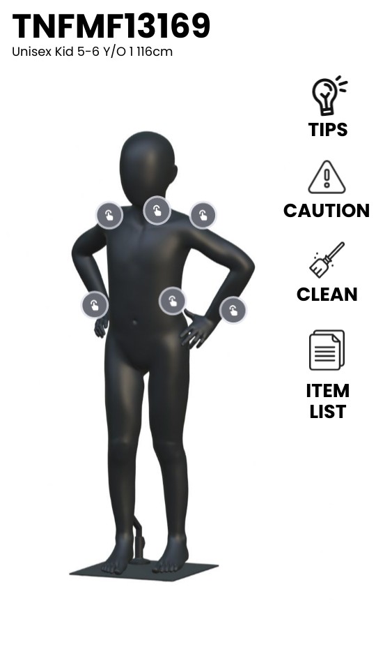 - Use the correct base to prevent tipping. Place mannequins on stable surfaces, away from high-traffic areas.