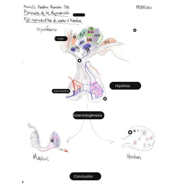Estas son solo algunas de las funciones básicas que forman parte del eje reproductivo de machos y hembras, en realidad, intervienen múltiples hormonas y elementos energéticos y señalizaciones nerviosas, las cuales permiten que sucedan o se produzcan las hormonas mencionadas a lo largo de esta imagen.