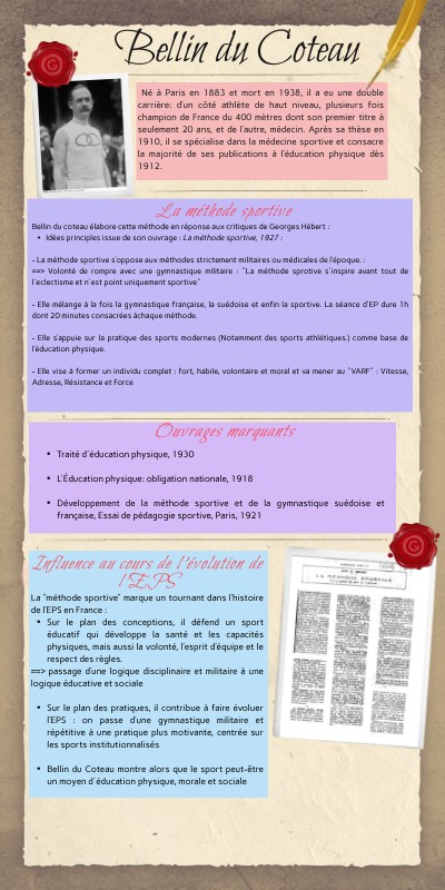 - Bellin du Coteau montre alors que le sport peut-être un moyen d'éducation physique, morale et sociale