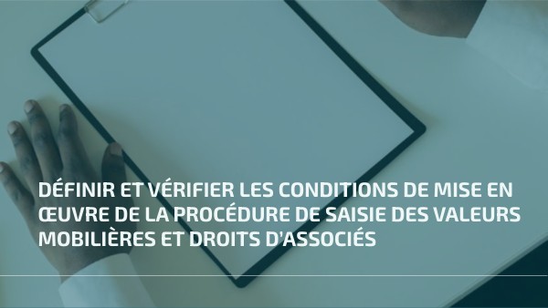 Définir et vérifier les conditions de mise en œuvre de la procédure de saisie des valeurs mobilières et droits d’associés