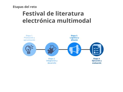 Esta es una representación visual interactiva de las etapas del reto Festival de literatura electrónica multimodal, parte de la unidad de formación H2009B Creación y curaduría de de artefactos digitales. de la Licenciatura en Humanidades Digitales, del Tecnológico de Monterrey.