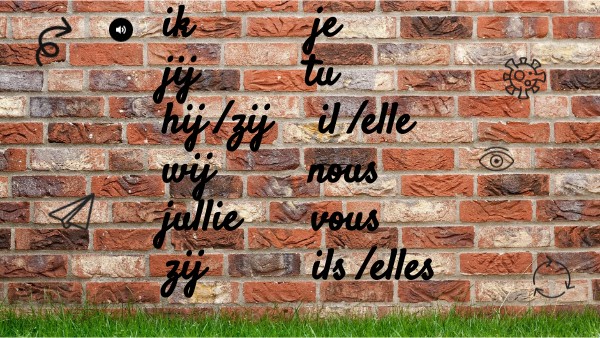 ik jejij tu hij /zij il /elle wij nous jullie vous zij ils /elles