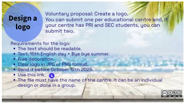 Voluntary proposal: Create a logo. You can submit one per educational centre and, if your centre has PRI and SEC students, you can submit two.