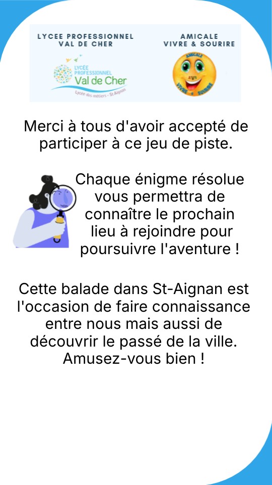 Cette balade dans St-Aignan est l'occasion de faire connaissance entre nous mais aussi de découvrir le passé de la ville. Amusez-vous bien !