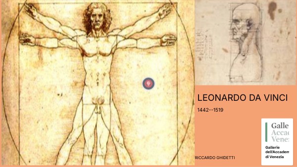 Leonardo da Vinci studia la forma umana utilizzando geometria e matematica, dimostrando le precise proporzioni del corpo umano. L'uomo viene rappresentato in due posizioni che permettono di iscriverlo sia in un cerchio che in un quadrato,evidenziando le sue proporzioni perfette.
