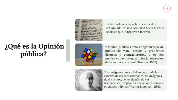 “Las imágenes que se hallan dentro de las cabezas de los seres humanos, las imágenes de sí mismos, de los demás, de sus necesidades, propósitos y relaciones son sus opiniones públicas” Walter Lippmann (1922).