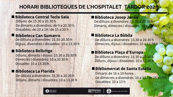HORARI BIBLIOTEQUES DE L'HOSPITALET TARDOR 2025
