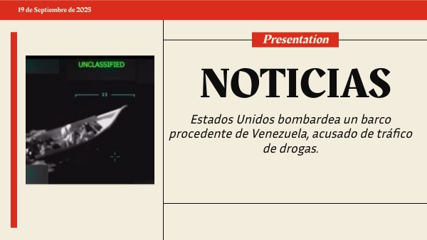Fuentes : https://www.bbc.com/mundo/articles/c147k3d80pno https://elpais.com/internacional/2025-09-02/fuerzas-de-eeuu-dispararon-contra-un-barco-que-transportaba-drogas-de-venezuela-segun-trump.html https://www.elmundo.es/internacional/2025/09/15/68c874f721efa01e0d8b4579.html