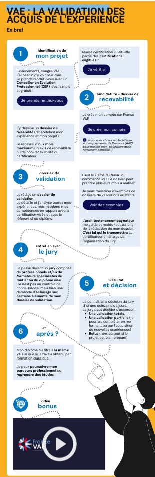 J'y dépose un dossier de faisabilité (récapitulant mon expérience et mon projet) Je recevrai d'ici 2 mois maximum un avis de recevabilité ou de non-recevabilité du certificateur.