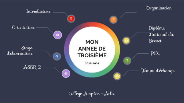 - Attentes en 3e- Règlement intérieur + fonctionnement vie scolaire - Points particuliers : Stage, devoirs communs et examens blancs, oraux, DNB - Importance de l'implication familiale : Pronote/ENT