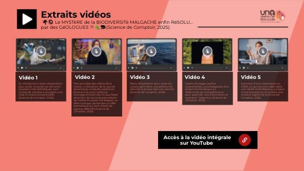 Interview d’une chercheuse du CNRS, ce qui ancre la vidéo dans une réalité scientifique aux enjeux contemporains et lui confère une certaine légitimité (Science de Comptoir, 2025).