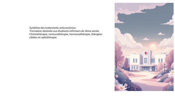 Synthèse des traitements anticancéreux Formation destinée aux étudiants infirmiers de 3ème année Chimiothérapie, immunothérapie, hormonothérapie, thérapies ciblées et radiothérapie