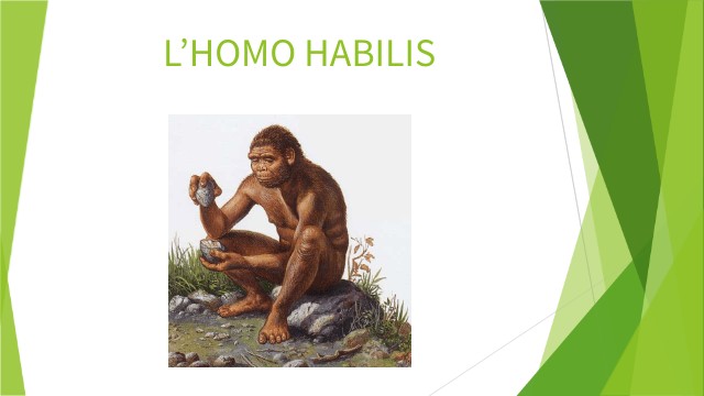- Circa tre milioni di anni fa, in Africa orientale e meridionale, viveva un altro essere più evoluto, molto simile a noi, anche se di dimensioni più piccole. Gli studiosi lo hanno chiamato homo habilis, che vuol dire “uomo abile”, cioè capace di svolgere un compito.
