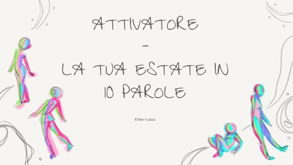 Ripensa alla tua estate, alle esperienze che hai vissuto o che avresti voluto vivere. Immagina di dover riassumere tutto in 10 parole. Quali sceglieresti? Non c'è un tema da seguire, puoi fare riferimento a qualsiasi cosa tu abbia affrontato: ore di studio (anche se dubito che siano state molte), lettura, viaggi, sport, casa, amici, ... Lascia che i ricordi ti guidino verso le emozioni che hai provato e scegli le parole che più descrivono il tuo pensiero/ricordo.