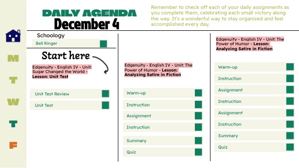 Remember to check off each of your daily assignments as you complete them, celebrating each small victory along the way. It’s a wonderful way to stay organized and feel accomplished every day.