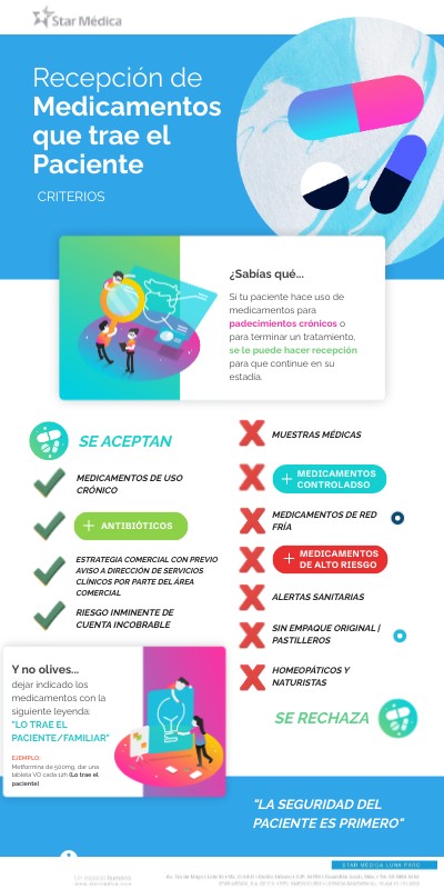 Sí tu paciente hace uso de medicamentos para padecimientos crónicos o para terminar un tratamiento, se le puede hacer recepción para que continue en su estadía.