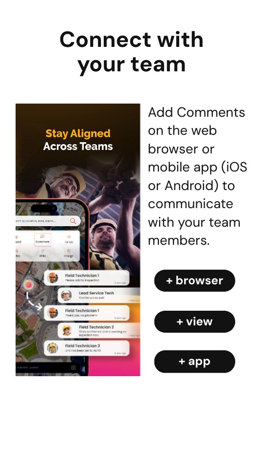 Add Comments on the web browser or mobile app (iOS or Android) to communicate with your team members.