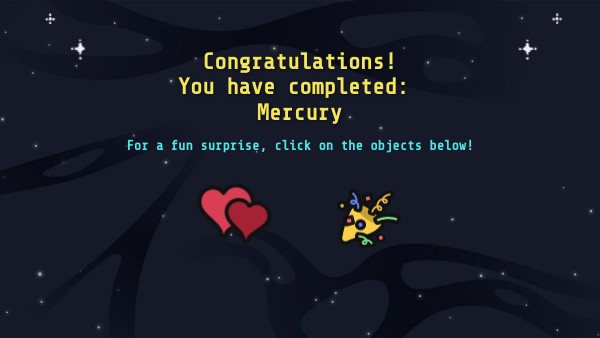 Congratulations! You have completed: Mercury