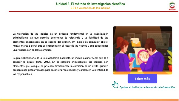 También los especialistas evalúan la relevancia, fiabilidad y potencial de cada elemento recolectado en el lugar de los hechos. Esta etapa es tan crucial como la recolección misma, ya que determina qué indicios se someterán a un análisis más profundo en el laboratorio, cómo se interpretarán sus hallazgos y cómo se integrarán al caso. No todos los indicios son iguales; su valor puede variar significativamente dependiendo de factores como su estado, su conexión con el crimen y la tecnología disponible para su análisis. Criterios de valoración La valoración de los indicios se basa en varios criterios fundamentales que ayudan a los investigadores a priorizar y tomar decisiones informadas: