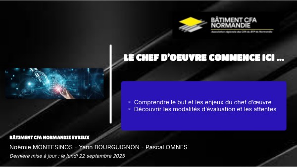 ▫️ Comprendre le but et les enjeux du chef d’œuvre ▫️ Découvrir les modalités d’évaluation et les attentes