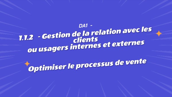 1.1.2 - Gestion de la relation avec les clients ou usagers internes et externes Optimiser le processus de vente