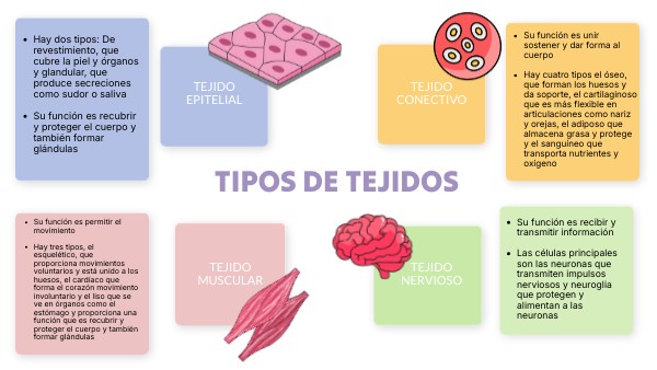 Hay dos tipos: De revestimiento, que cubre la piel y órganos y glandular, que produce secreciones como sudor o saliva