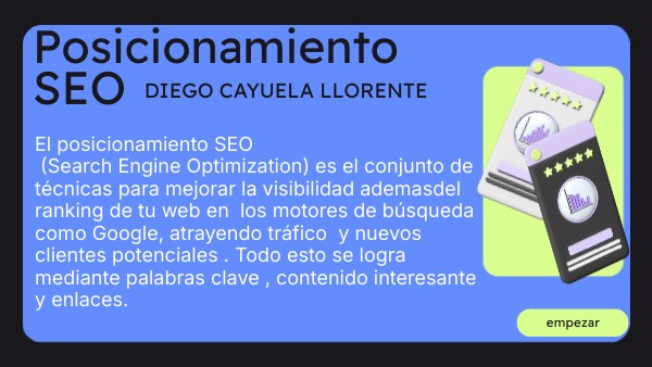 El posicionamiento SEO (Search Engine Optimization) es el conjunto de técnicas para mejorar la visibilidad ademasdel ranking de tu web en los motores de búsqueda como Google, atrayendo tráfico y nuevos clientes potenciales . Todo esto se logra mediante palabras clave , contenido interesante y enlaces.