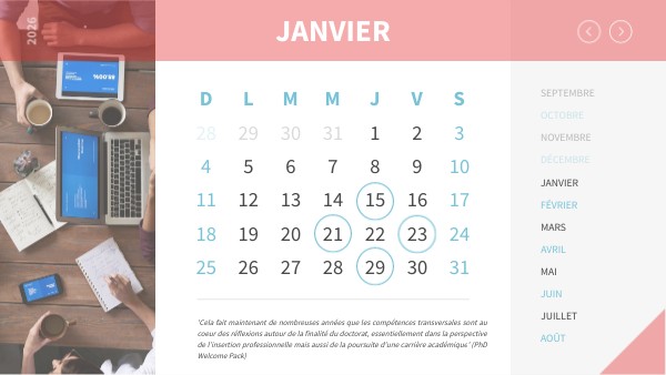 'Cela fait maintenant de nombreuses années que les compétences transversales sont au coeur des réflexions autour de la finalité du doctorat, essentiellement dans la perspective de l’insertion professionnelle mais aussi de la poursuite d’une carrière académique' (PhD Welcome Pack)