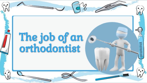 A dentist -> health of the teeth = cavities or cleaning. They study -> move teeth and fix bite problems.
