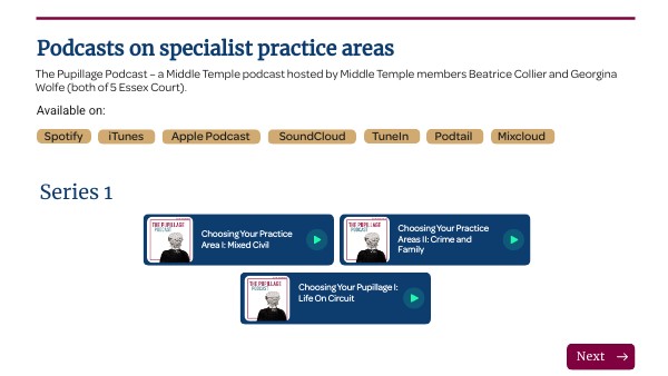 The Pupillage Podcast – a Middle Temple podcast hosted by Middle Temple members Beatrice Collier and Georgina Wolfe (both of 5 Essex Court).