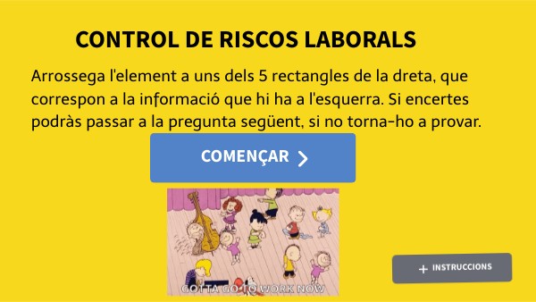 Arrossega a un dels 5 rectangles de la dreta, que correspon la informació que hi ha a l'esquerra. Si encertes podràs accedir a la pregunta següent, si no torna-ho a provar.