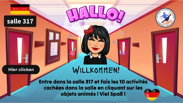 Entre dans la salle 317 et fais les 10 activités cachées dans la salle en cliquant sur les objets animés ! Viel Spaß !