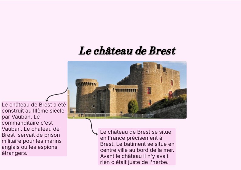 Le château de Brest se situe en France précisement à Brest. Le batiment se situe en centre ville au bord de la mer. Avant le château il n'y avait rien c'était juste de l'herbe.