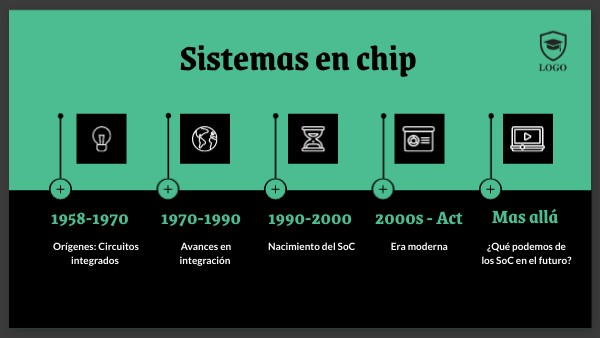 • Los SoC se vuelven esenciales en smartphones, tablets, wearables, y sistemas IoT. • Incorporan múltiples núcleos, procesamiento gráfico, conectividad inalámbrica, y aceleradores de IA. • Ejemplos actuales: Apple M1/M2, Qualcomm Snapdragon, NVIDIA Tegra.