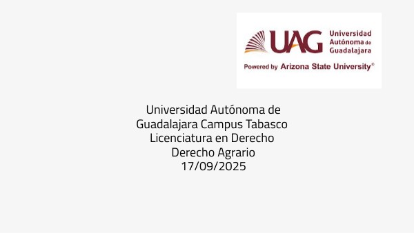 Universidad Autónoma de Guadalajara Campus Tabasco Licenciatura en Derecho Derecho Agrario 17/09/2025